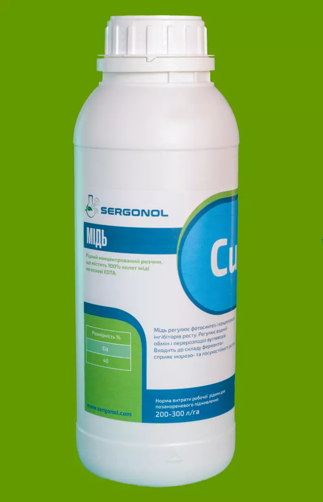 Препарат эффективно компенсирует дефицит меди в растениях. Не содержит балластных добавок, поэтому не вызывает ожогов листьев, полностью усваивается через листовую поверхность растений. Медь входит в состав ферментов и участвует в окислительно-восстановительных процессах, около 50% меди содержится в хлоропластах. При дефиците меди нарушается лигнификация клеточных стенок, снижается интенсивность дыхания и фотосинтеза. Признаки медного голодания проявляются чаще на торфянистых и кислых песчаных почвах. Симптомы заболевания для зерновых культур проявляются в побелении и засыхании кончиков листовой пластинки. При сильном дефиците меди растения начинают усиленно куститься, но в дальнейшем колошения не происходит, и весь стебель постепенно засыхает. Плодовые культуры при недостатке меди болеют, так называемой, «Сухой верхушкой» или экземой. Наиболее чувствительными растениями к недостатку меди являются: пшеница, ячмень, овес, лен, кукуруза, морковь, свекла, лук, шпинат, люцерна, белокочанная капуста, картофель.